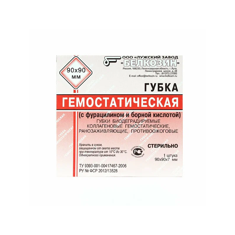 Коллагеновая кровоостанавливающая губка — это стерильный медицинский материал размером 90908 мм, предназначенный для быстрой остановки кровотечений во время хирургических операций у животных.