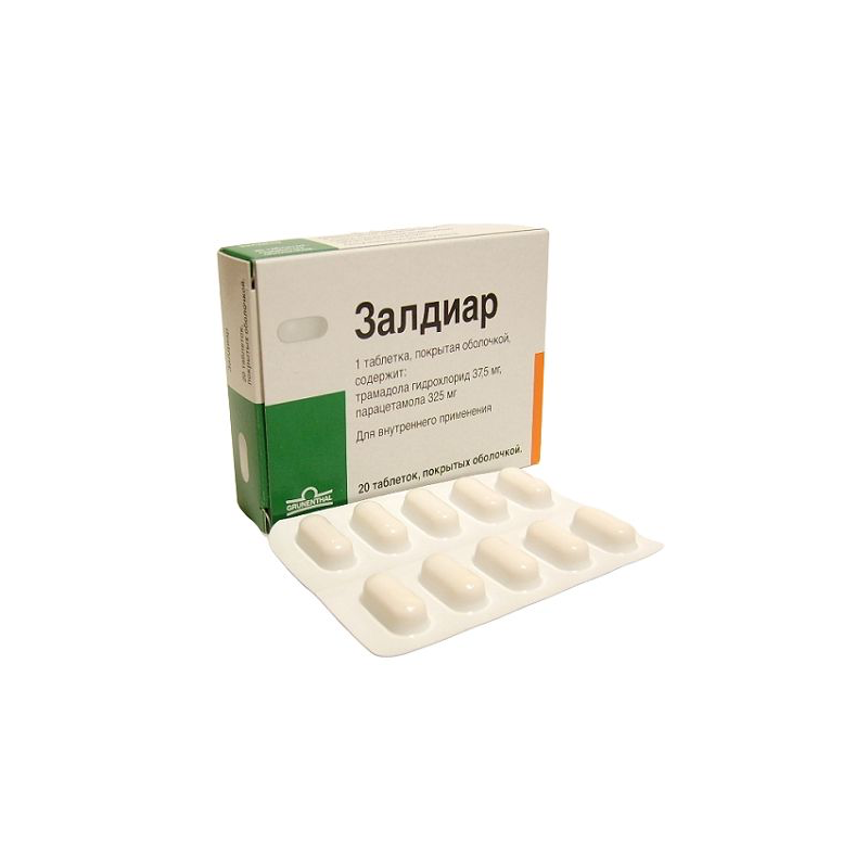 Залдиар — это таблетки, покрытые пленочной оболочкой, содержащие трамадол гидрохлорид (37,5 мг) и парацетамол (325 мг), предназначенные для лечения умеренной и сильной боли у взрослых.