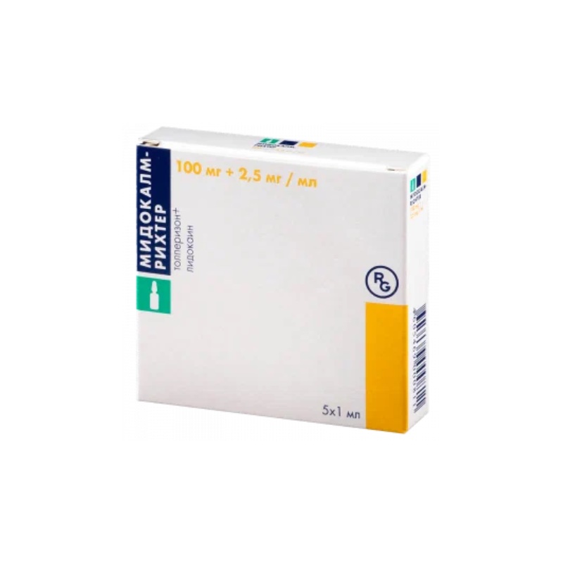 Мидокалм — это раствор для инъекций, содержащий толперизона гидрохлорид (100 мг/мл) и лидокаина гидрохлорид (2,5 мг/мл), предназначенный для лечения спастичности и мышечных спазмов у взрослых.
