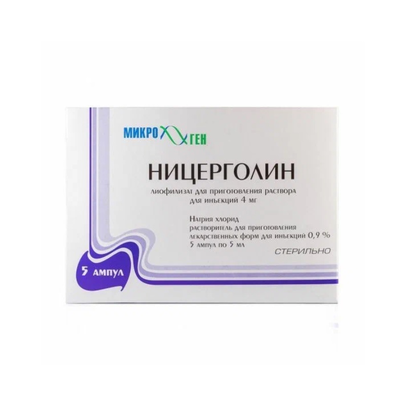 Ницерголин — это лиофилизат для приготовления раствора для инъекций, содержащий 4 мг ницерголина в ампуле, дополненный растворителем (4 мл 0,9% раствора натрия хлорида), предназначенный для улучшения мозгового кровообращения.