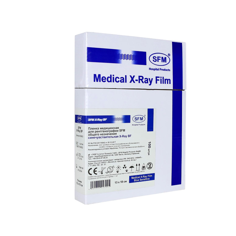 Предназначена для использования в рентген-кабинетах, помогает в диагностике переломов, опухолей и внутренних патологий, совместима со стандартными проявителями и фиксаторами.