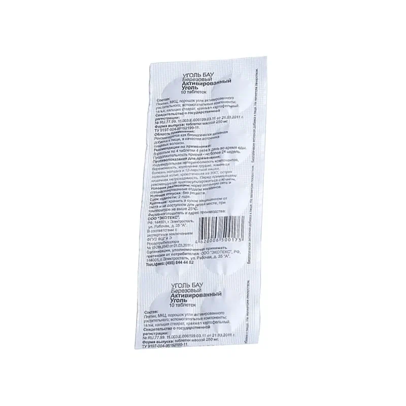 Содержит высокодисперсный порошок древесного активированного угля, обладающий высокой адсорбционной способностью, что помогает при отравлениях, метеоризме и нарушениях пищеварения.